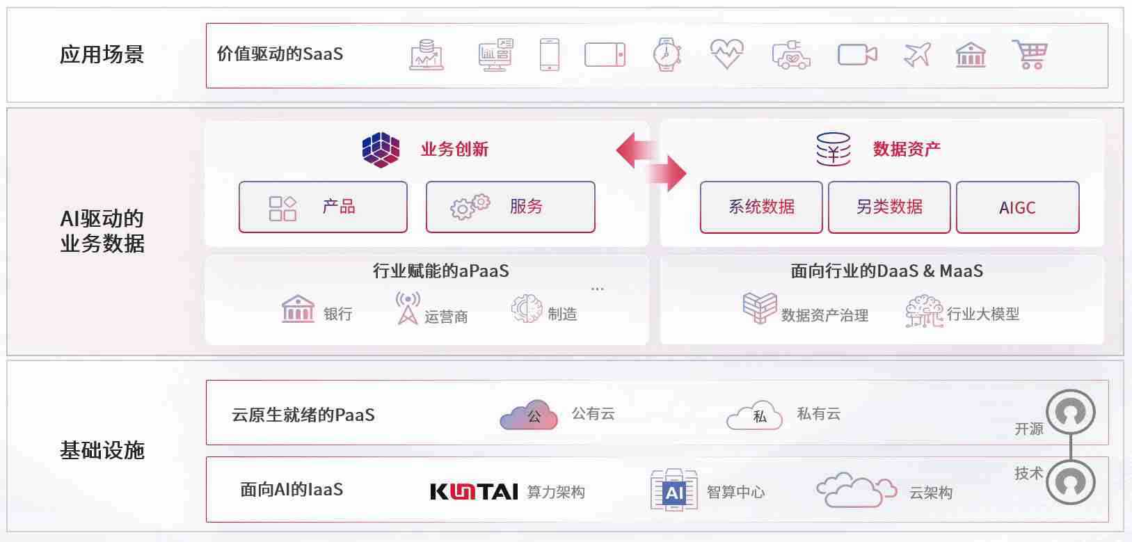 数字时代,,,,围绕企业数字化转型的关键要素,,,人生就是搏数码开创性的提出数云融合战略和技术体系框架,,着力在云原生、、数字原生、、、AI原生和信创产业上架构产品和服务能力,,,为处在不同数字化转型阶段的快消零售、、、、汽车、、、、金融、、、、医疗、、、政企、、、、教育、、、运营商等行业客户提供泛在的敏捷IT能力和融合的数据驱动能力,,,,构建跨界融合创新的数字业务场景和新业务模式,,助力企业级客户建立面向未来的核心能力和竞争优势,,,,全面推动社会的数字化、、智能化转型升级。。。